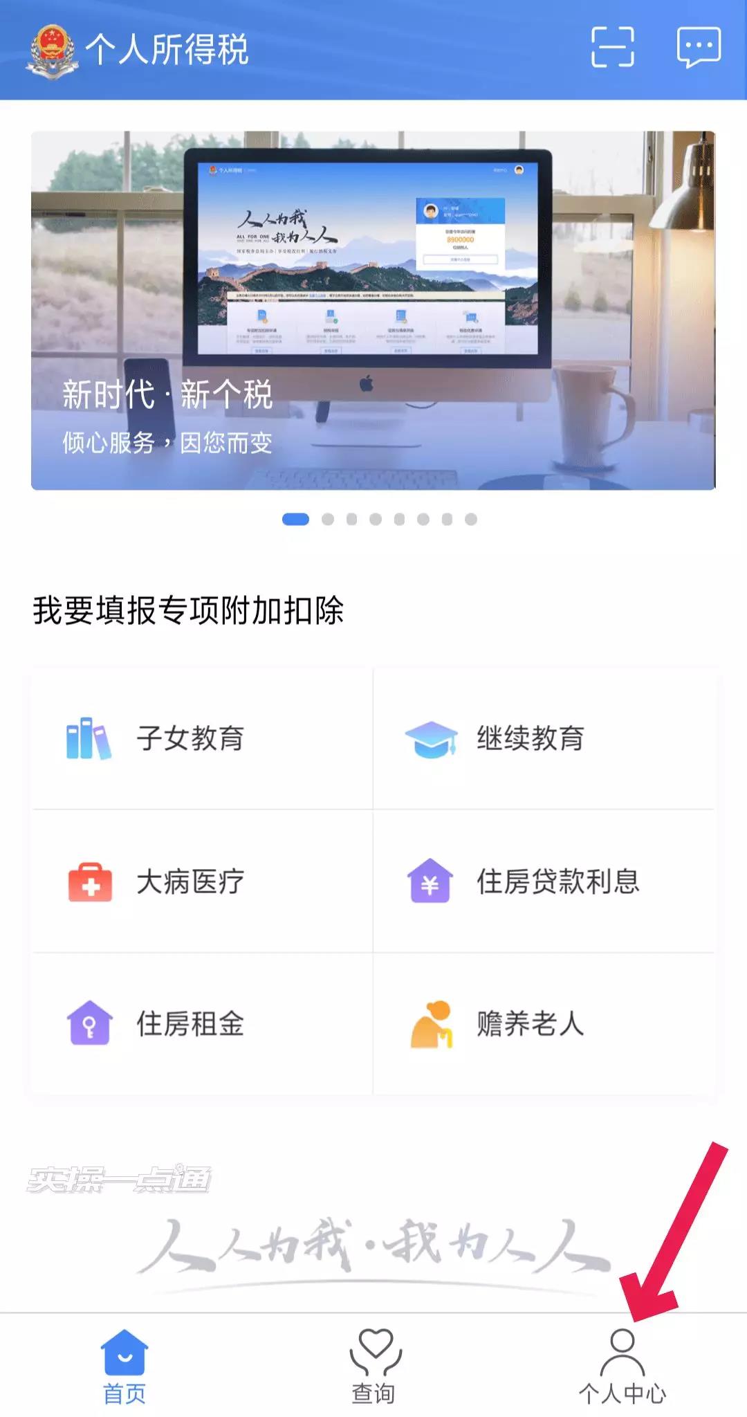 1、打开“个人所得税APP”点击右下角“个人中心”(如何下载、安装个人所得税APP请看文章末尾)