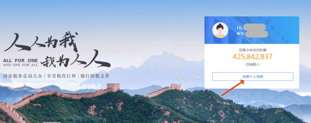 2、点击“完善个人信息”