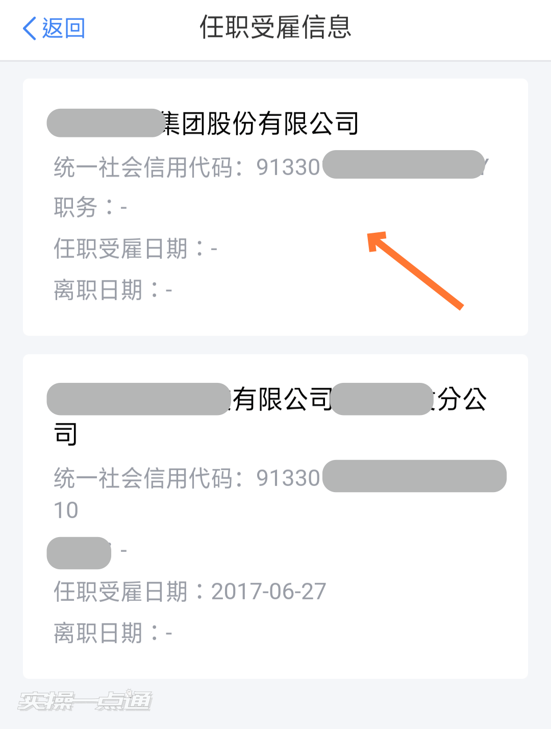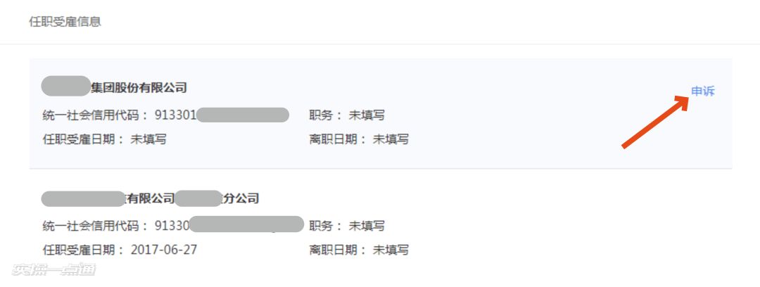 4、点击你未任职企业或已离职的企业卡片
