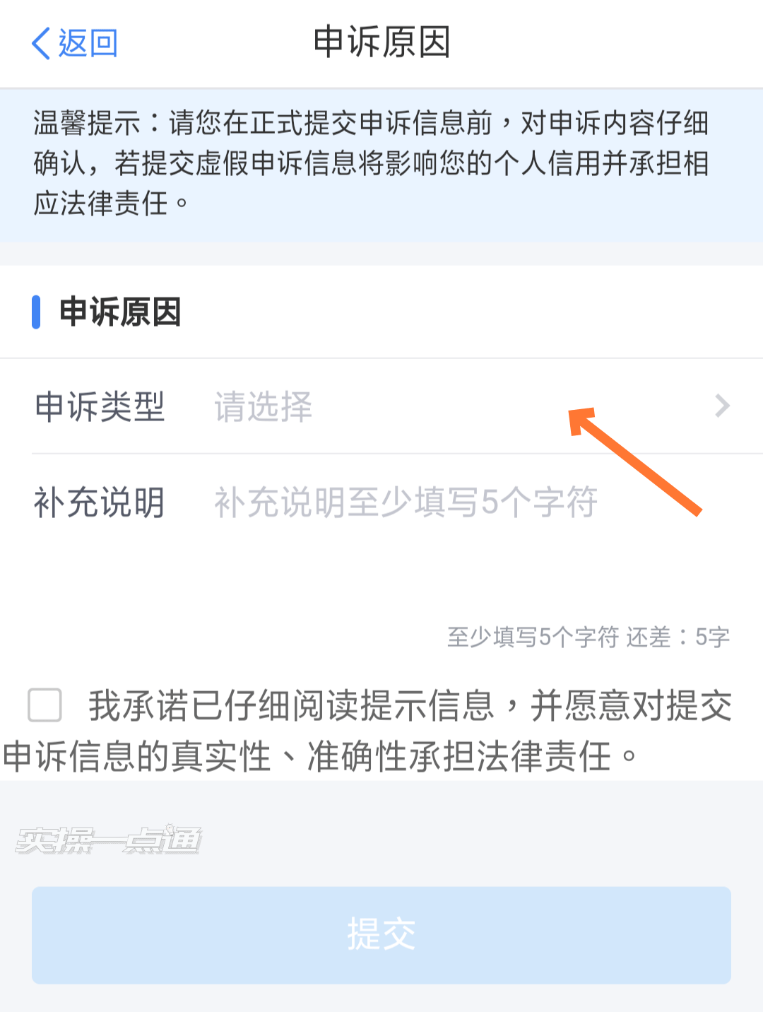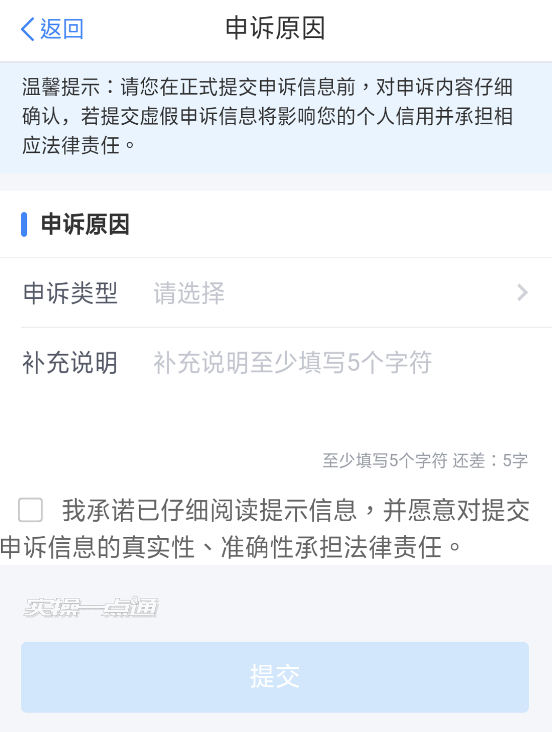 点击“提交”,完成申诉。