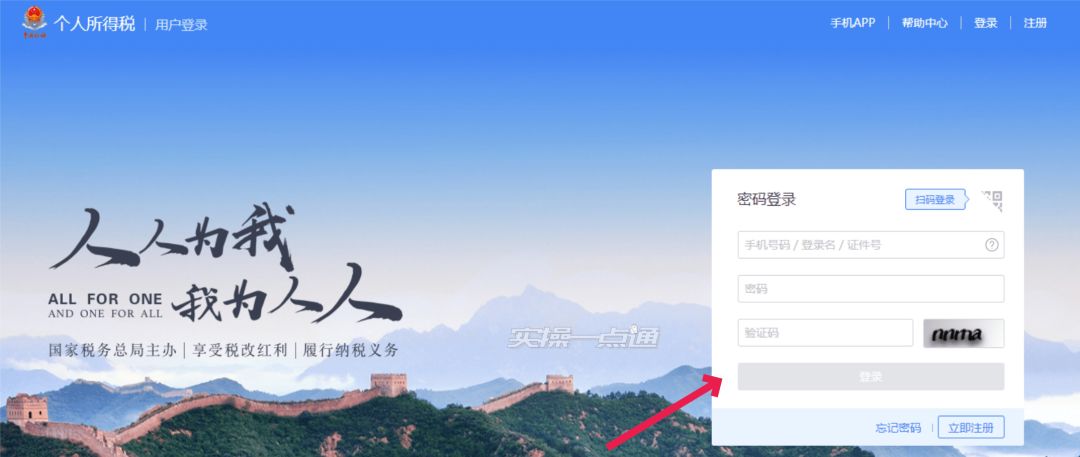 1、选择密码登录或者直接打开“个人所得税APP”扫码登录