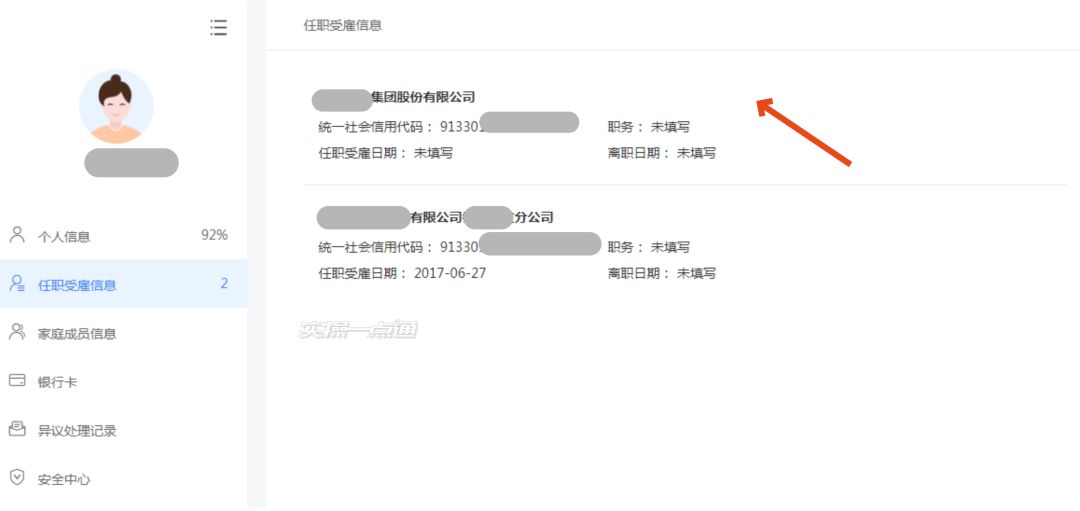 3、查看“任职受雇信息”一栏后面的数字,如大于实际任职企业数量,则点击“任职受雇信息”栏查看详情