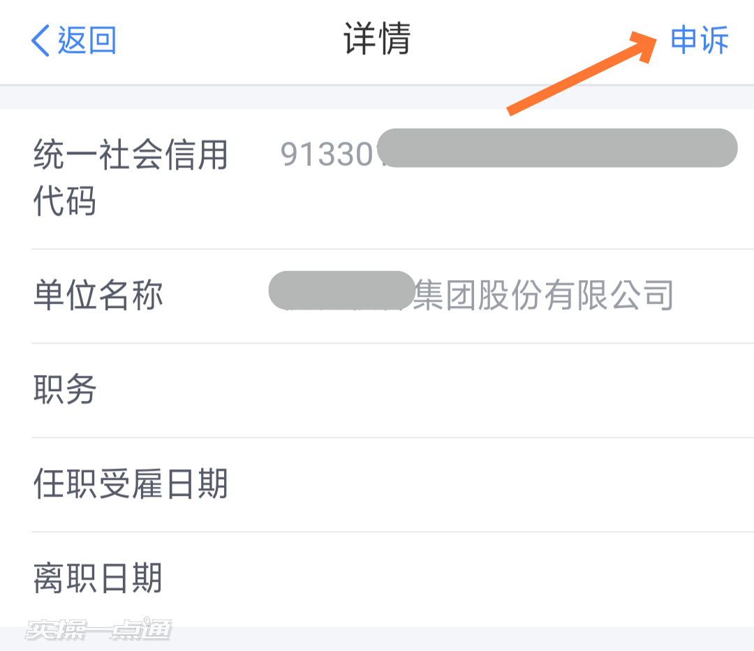 2、打开“详情”页,点击右上角“申诉”